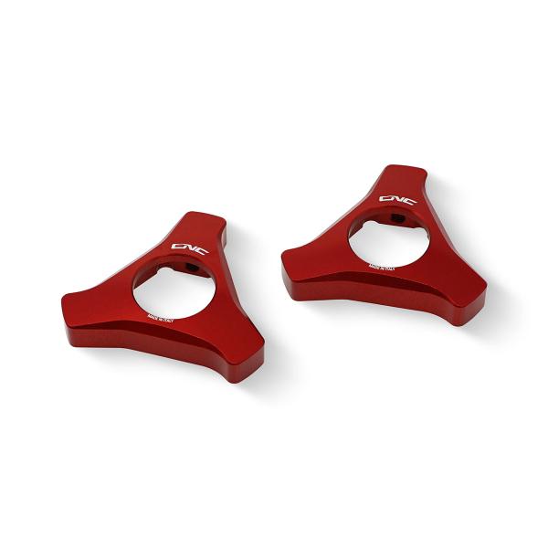 The CNC Racing 22 mm fork preload adjusters, CNC-machined from billet lightweight alloy and red anodized, are designed to provide accurate fork spring preload adjustment.