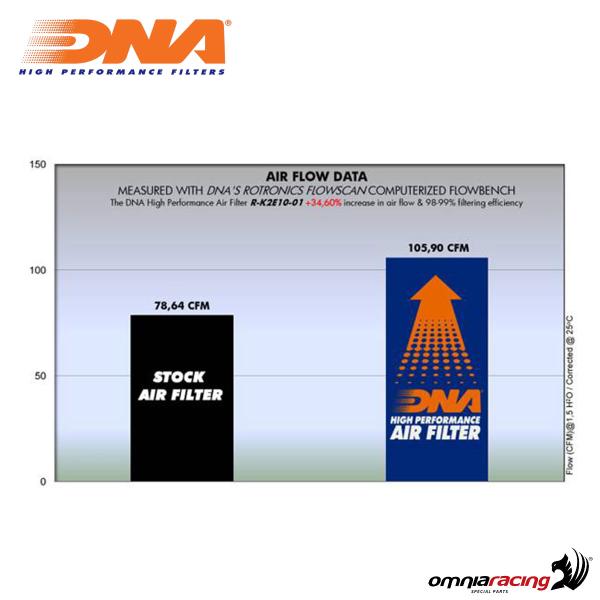 The DNA air filter R-K2E10-01 for Kawasaki KLX 250 2009-2020 delivers maximum airflow and high performance, whether on the racetrack, city roads, or off-road trails. Built to strict OEM fitment standards, it features a durable plastic frame that prevents deformation inside the airbox.