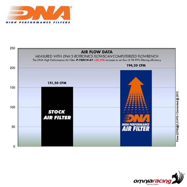 The DNA air filter P-Y8N14-01 for Yamaha MT09 SP 2018-2019 delivers maximum airflow and high performance, whether on the racetrack, city roads, or off-road trails. Built to strict OEM fitment standards, it features a durable plastic frame that prevents deformation inside the airbox.