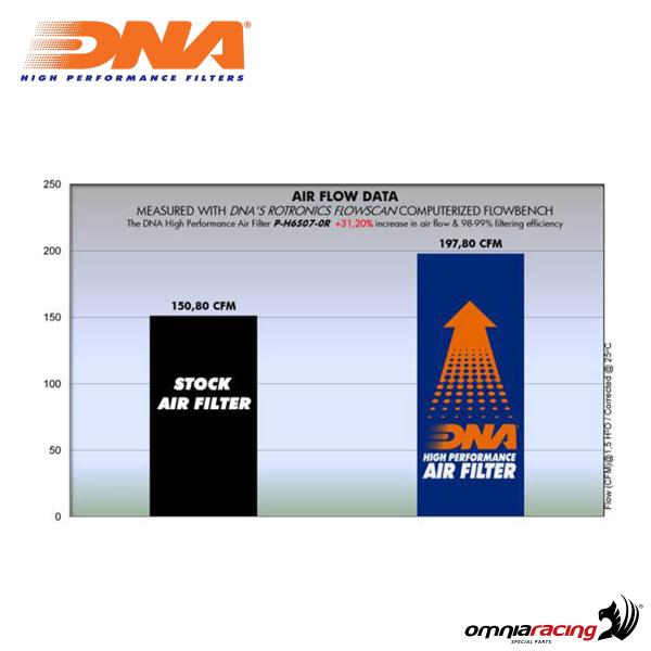 The DNA Racing air filter P-H6S03-0R for Honda CBR600RR 2003-2006 represents the ultimate in high-performance air filtration. Featuring the revolutionary DNA FCd (Full Contour design), it provides at least 20% and up to 80% more effective filtering area, precisely following the internal shape of the airbox—no matter how complex.