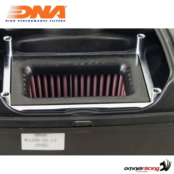 The DNA Stage 2 air filter with airbox cover R-BM12E13-S2 for BMW R 1250 GS Adventure 2019-2023 is designed to replace the OEM intake duct and significantly enhance engine performance. This Stage 2 kit replaces the stock plastic airbox intake, increasing airflow, power, torque, and throttle response.