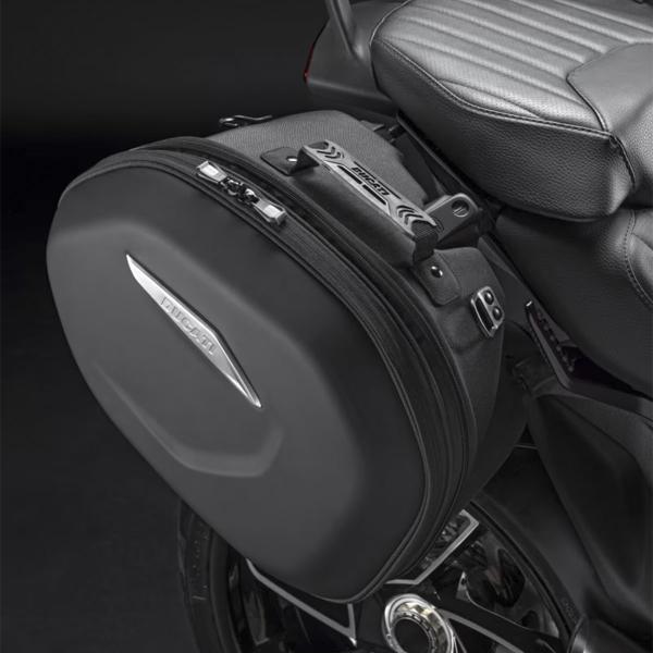 The side bags are specially designed to adapt to your Diavel V4, guaranteeing perfect integration with the bike's design. You'll have enough space to carry everything you need for the ride, without compromising the handling or aesthetics of your bike.