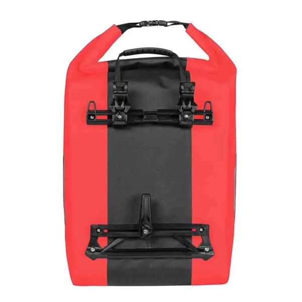 The pair of GIVI JUNTER 20L waterproof side bags is designed to meet the needs of the most demanding cycle tourists. With a capacity of 20 liters per side and made from durable Poly-TPE in Red, the bags are waterproof and feature a ROLL-TOP closure for maximum protection and versatility. Thanks to the universal Givi RAPIDO attachment system, installation is quick and easy.