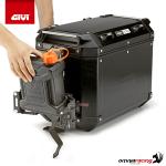 With this support it is possible to hook the GIVI tank (Cod.TAN01) to transport liquids, water, petrol and oil to the trunk of your bike. The support is removable, so it is possible to use it only if necessary