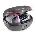 Explore new horizons with the V45 Arena Suitcase by GIVI. With an impressive 45 liters of volume and a sturdy MONOKEY attachment, this suitcase is ready to take on any journey. Easy to install and remove, fits various brands of motorcycles and scooters. Its 10kg load capacity offers enough space for two full-face helmets, making it the ideal companion for road adventures. Available in a standard version with red reflectors or in a TECH version with smoked reflectors, the V45 Arena can be customized according to your style. Complete your experience with GIVI accessories such as the E95S backrest, the T502B internal bag and more. Take on the road with style, reliability and GIVI quality.