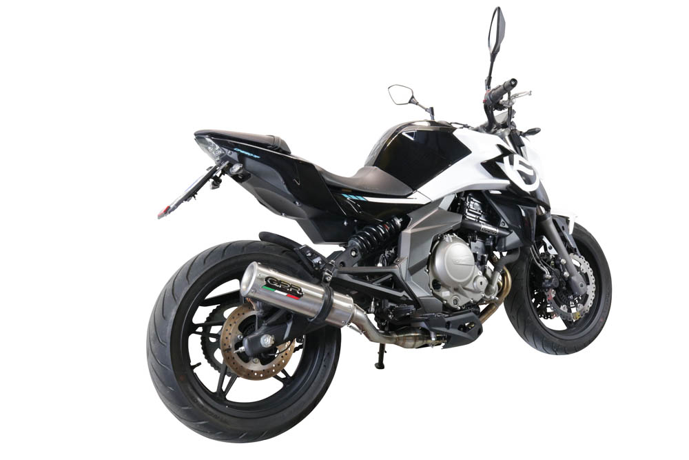 GPR CF.4.CAT.M3.INOX M3 exhaust for Cf Moto 650 Mt 2021-2024 is a high quality motorcycle silencer, ideal for those who want to improve the performance, sound and aesthetics of their motorcycle. This muffler, made in steel with sleeve Satin 304 Inox, has a design Tondo with Satin stainless steel end cap. The GPR slipon is approved with catalyst included with link pipe and removable db killer , making it perfect for this motorcycle. Installation is simple and requires no modifications or remapping, the G.P.R. M3 Inox combines effective weight saving and a full-bodied sound.