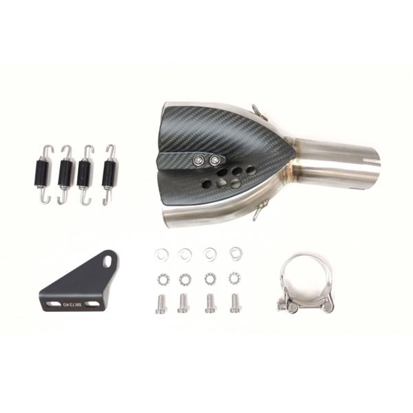 The kit includes a dedicated link pipe, mounting hardware, and all components needed for installation. It’s fully Plug&Play and requires no ECU remapping – just mount and ride.