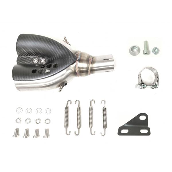 The kit includes a dedicated link pipe, mounting hardware, and all components needed for installation. It’s fully Plug&Play and requires no ECU remapping – just mount and ride.