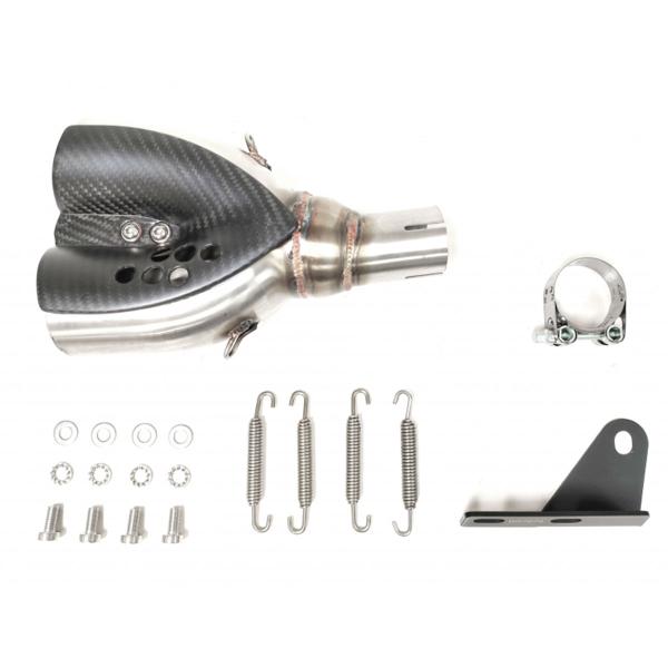 The kit includes a dedicated link pipe, mounting hardware, and all components needed for installation. It’s fully Plug&Play and requires no ECU remapping – just mount and ride.
