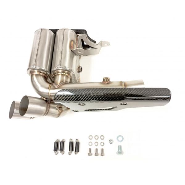 The kit includes a dedicated link pipe, mounting hardware, and all components needed for installation. It’s fully Plug&Play and requires no ECU remapping – just mount and ride.