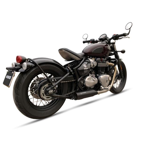 The IXIL Ironhead Round Black racing (not street-legal) slip-on exhaust for Triumph Bobber 2017-2020 combines top-tier performance, lightweight construction, and aggressive styling. Built with Matt polished stainless steel and a Matt polished steel , this exhaust is designed to elevate both the look and performance of your bike.