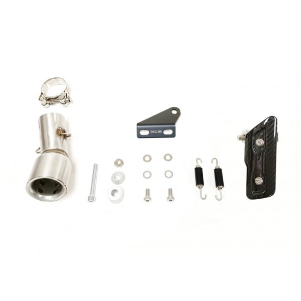 The kit includes a dedicated link pipe, mounting hardware, and all components needed for installation. It’s fully Plug&Play and requires no ECU remapping – just mount and ride.