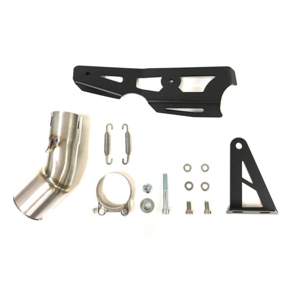 The kit includes a dedicated link pipe, mounting hardware, and all components needed for installation. It’s fully Plug&Play and requires no ECU remapping – just mount and ride.
