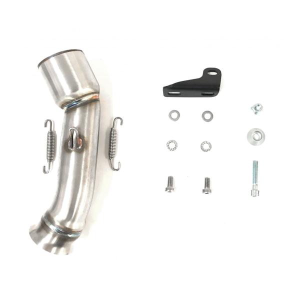 The kit includes a dedicated link pipe, mounting hardware, and all components needed for installation. It’s fully Plug&Play and requires no ECU remapping – just mount and ride.