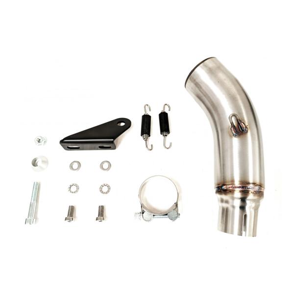 The kit includes a dedicated link pipe, mounting hardware, and all components needed for installation. It’s fully Plug&Play and requires no ECU remapping – just mount and ride.