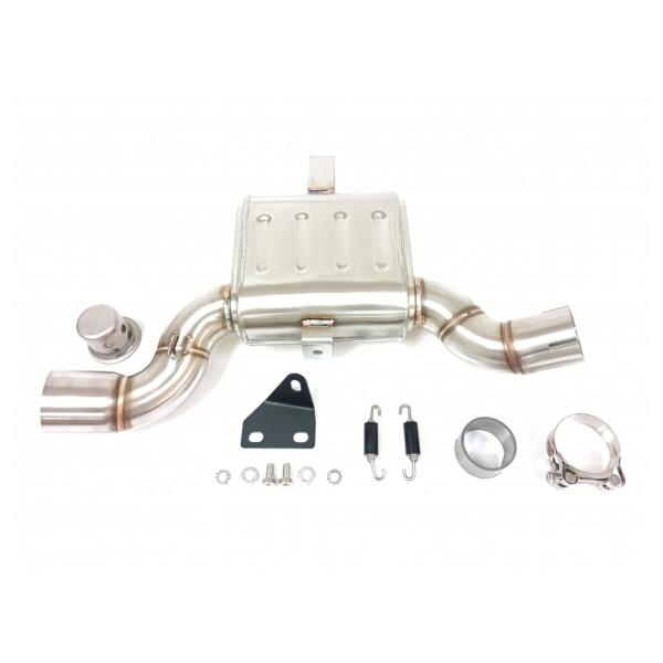 The kit includes a dedicated link pipe, mounting hardware, and all components needed for installation. It’s fully Plug&Play and requires no ECU remapping – just mount and ride.
