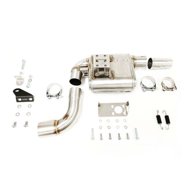 The kit includes a dedicated link pipe, mounting hardware, and all components needed for installation. It’s fully Plug&Play and requires no ECU remapping – just mount and ride.