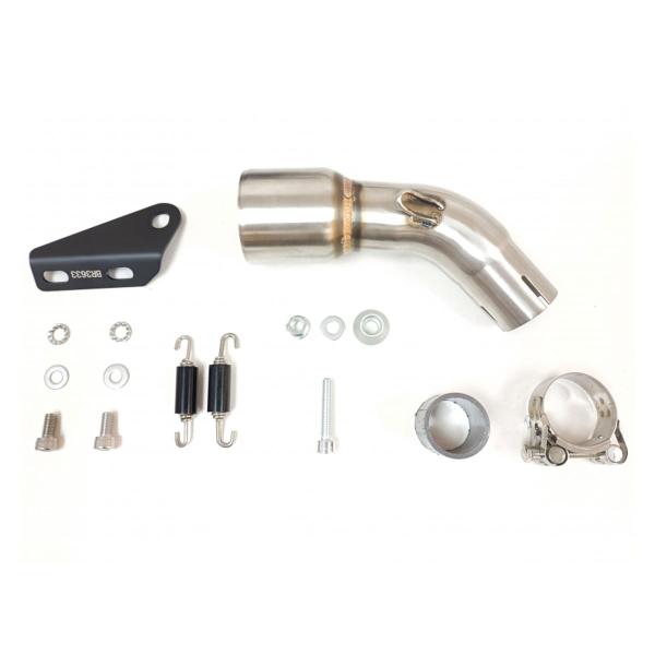 The kit includes a dedicated link pipe, mounting hardware, and all components needed for installation. It’s fully Plug&Play and requires no ECU remapping – just mount and ride.