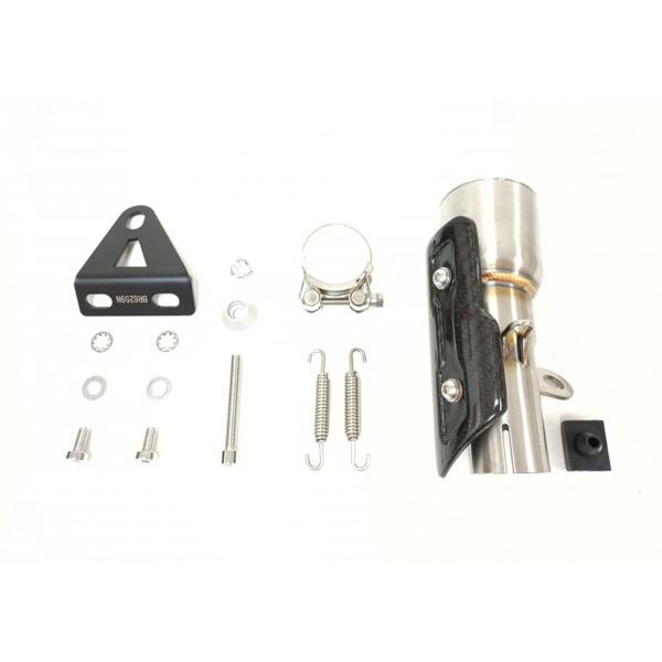 The kit includes a dedicated link pipe, mounting hardware, and all components needed for installation. It’s fully Plug&Play and requires no ECU remapping – just mount and ride.