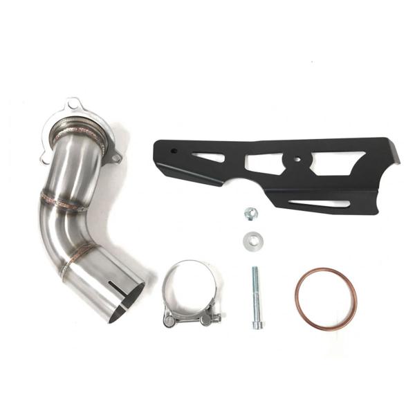 The kit includes a dedicated link pipe, mounting hardware, and all components needed for installation. It’s fully Plug&Play and requires no ECU remapping – just mount and ride.