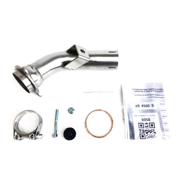 The kit includes a dedicated link pipe, mounting hardware, and all components needed for installation. It’s fully Plug&Play and requires no ECU remapping – just mount and ride.