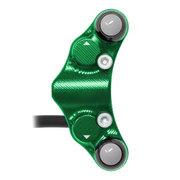 The Jetprime Left switchgear for Kawasaki Ninja ZX-10R/R 2016-2018 is a high-performance Road-Use component made of CNC-machined 7075 Ergal Green anodized aluminum, designed for seamless installation and exceptional durability. Jetprime, a leader in motorcycle electronics, delivers a fully compatible Plug&Play unit with factory harness connections.