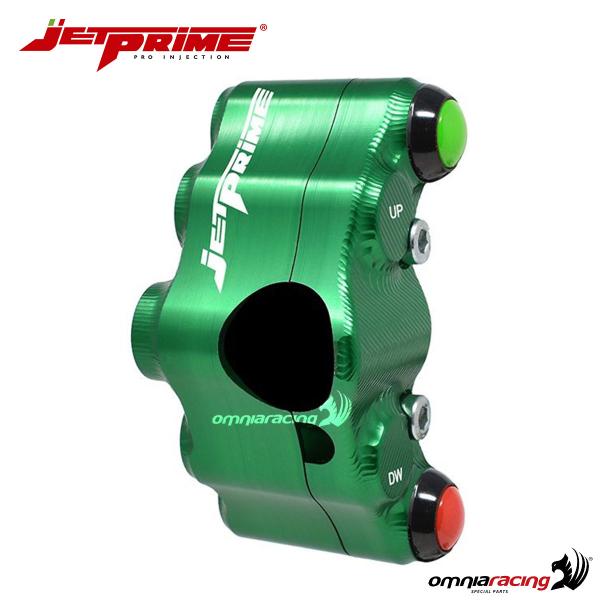 The Jetprime Left switchgear for Kawasaki Ninja ZX-6R 2019-2023 is a high-performance Road-Use component made of CNC-machined 7075 Ergal Green anodized aluminum, designed for seamless installation and exceptional durability. Jetprime, a leader in motorcycle electronics, delivers a fully compatible Plug&Play unit with factory harness connections.