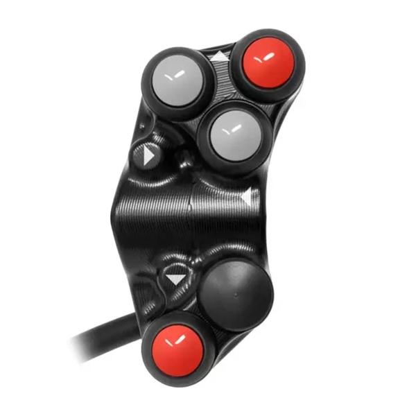 The Jetprime Left switchgear for Triumph Tiger 900 2020-2024 is a high-performance Road-Use component made of CNC-machined 7075 Ergal Black anodized aluminum, designed for seamless installation and exceptional durability. Jetprime, a leader in motorcycle electronics, delivers a fully compatible Plug&Play unit with factory harness connections.