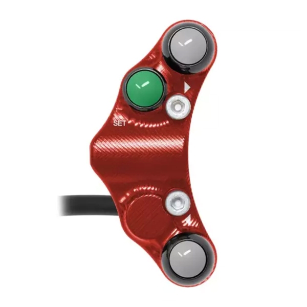 The Jetprime Left switchgear for MV Agusta Turismo Veloce 800 /R/Lusso/RC/SCS 2015-2023 is a high-performance Road-Use component made of CNC-machined 7075 Ergal Red anodized aluminum, designed for seamless installation and exceptional durability. Jetprime, a leader in motorcycle electronics, delivers a fully compatible Plug&Play unit with factory harness connections.
