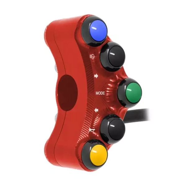 The Jetprime Left switchgear for Aprilia RSV4 /R 1000 2009-2010 is a high-performance Road-Use component made of CNC-machined 7075 Ergal Red anodized aluminum, designed for seamless installation and exceptional durability. Jetprime, a leader in motorcycle electronics, delivers a fully compatible Plug&Play unit with factory harness connections.