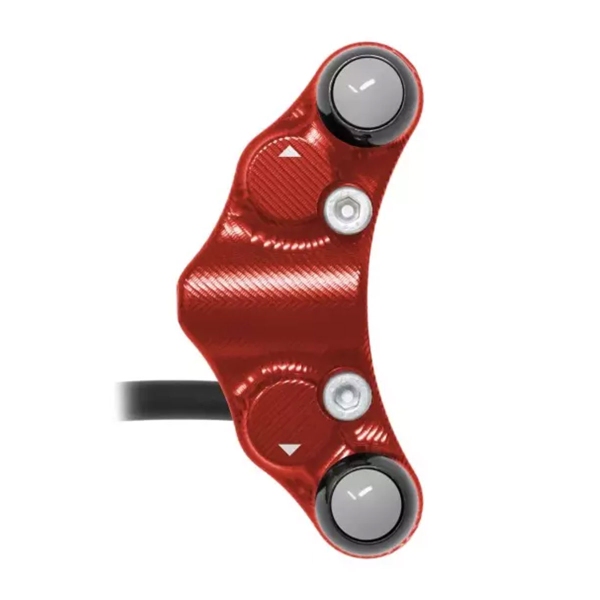 The Jetprime Left switchgear for Ducati Monster 1200 R 2017-2019 is a high-performance Road-Use component made of CNC-machined 7075 Ergal Red anodized aluminum, designed for seamless installation and exceptional durability. Jetprime, a leader in motorcycle electronics, delivers a fully compatible Plug&Play unit with factory harness connections.