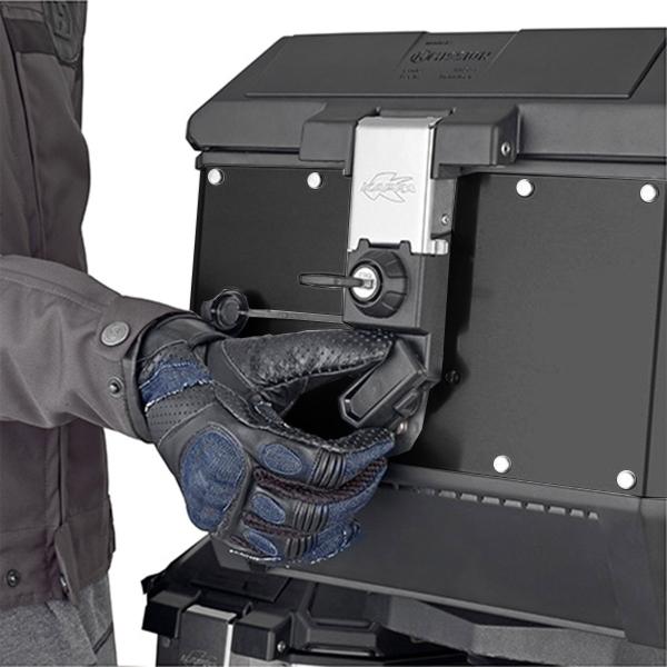 The Kappa Moto K'MISSION 44-liter Motorcycle top case, made of durable black aluminum, is an excellent choice for motorcyclists looking for ample storage space that can comfortably accommodate a modular helmet. This suitcase is equipped with the MONOKEY system, one of the most widespread in the world, which offers the convenience of a single key to open and release the suitcase from the plate. It is compatible with all Monokey plates, except those equipped with stop light kits.
