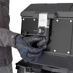 The K'MISSION is designed to be easily repairable and ensure long life. Components such as the removal system, bottom stabilizers and bottom can be easily replaced, significantly extending the useful life of the suitcase. KAPPA MOTO ensures that its suitcases are impervious to heavy rain by testing them with a flow rate of over 20 liters per minute using a specially designed machine."