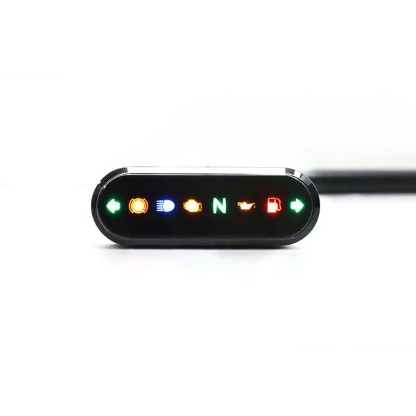 The KOSO Indicator Display is a compact and practical solution to monitor essential vehicle indicators such as fuel level, engine control, and more. Equipped with clear LED indicators for each function and integrated voltage reading, this unit enhances your vehicle's performance monitoring.