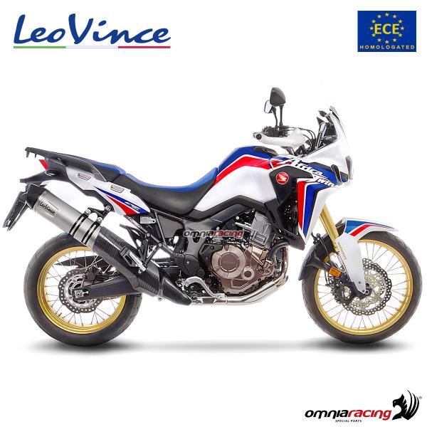The muffler LV One Evo LeoVince line in stainless steel with carbon fiber cup, allows an increase in power, combined with a unique and unmistakable sound. Designed on the specific lines of yours Honda CRF1000L Africa Twin , maintains original homologation of the bike, with the weight of approx 4 Kg, it is much lighter and more performing than the standard exhaust. The terminal does not require remapping and is equipped with everything necessary for a perfect assembly (Fitting, clamps and bolts).