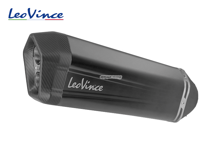 The Leovince LV-12 Black Edition is built with AISI 304 stainless steel with black ceramic-based paint to guarantee long-lasting performance, ideal in all rain or mud conditions. With a powerful sound even at low rpm, LV12 uses a specially designed internal geometry and high-resistance blades to optimize the flow of exhaust gases, producing a deep and discreet sound. The final full carbon end cap houses the dual output, representing the ideal sounding board for the distinctive sound of the LV-12.