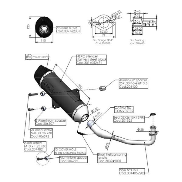 The Leovince NERO Honda Forza 125 exhaust It is approved with catalytic converter included, thanks to the included fitting and the screws supplied, installation is very simple, without making any modifications to the motorbike and without remapping the control unit.