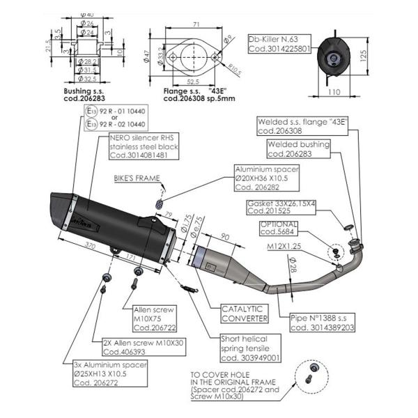 The Leovince NERO Honda PCX 125 exhaust It is approved with catalytic converter included, thanks to the included fitting and the screws supplied, installation is very simple, without making any modifications to the motorbike and without remapping the control unit.