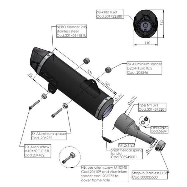 The AISI 304 stainless steel body gives LeoVince Nero exceptional impact resistance, while the black ceramic-based paint ensures optimal protection against high temperatures. The LeoVince brand is engraved on the surface of the silencer using modern laser technique. The outlet cap, characterized by an asymmetrical and aggressive cut, is entirely made of carbon fiber, adding a touch of lightness and a unique aesthetic to your LeoVince Nero exhaust.