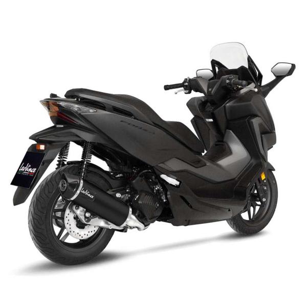 The Leovince NERO Honda Forza 125 exhaust is racing NOT approved for road use, thanks to the included fitting and the screws supplied, installation is very simple, without making any modifications to the motorbike and without remapping the control unit.