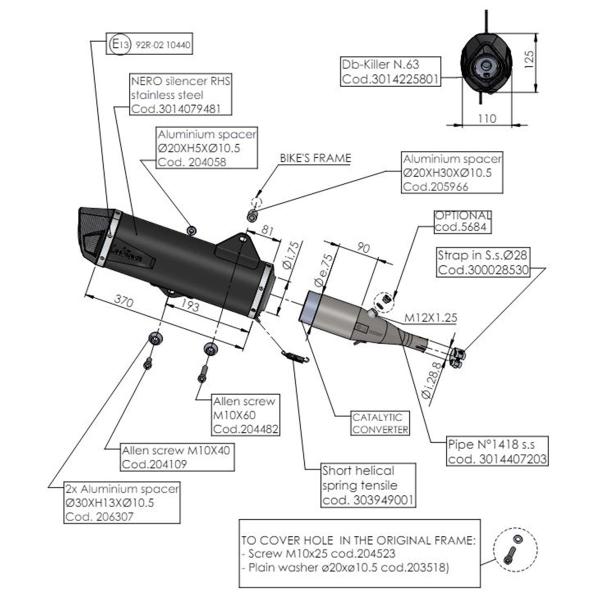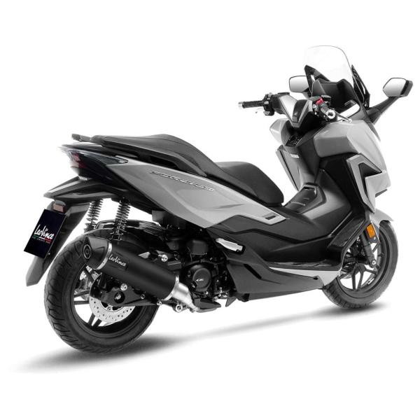 The Leovince NERO Honda Forza 350 exhaust It is approved with catalytic converter included, thanks to the included fitting and the screws supplied, installation is very simple, without making any modifications to the motorbike and without remapping the control unit.