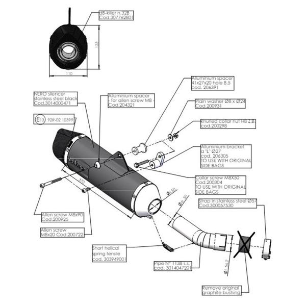 The Leovince NERO Suzuki Vstrom 1000 ABS/XT exhaust is approved, thanks to the included fitting and the screws supplied, installation is very simple, without making any modifications to the motorbike and without remapping the control unit.