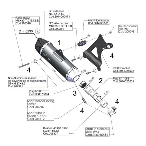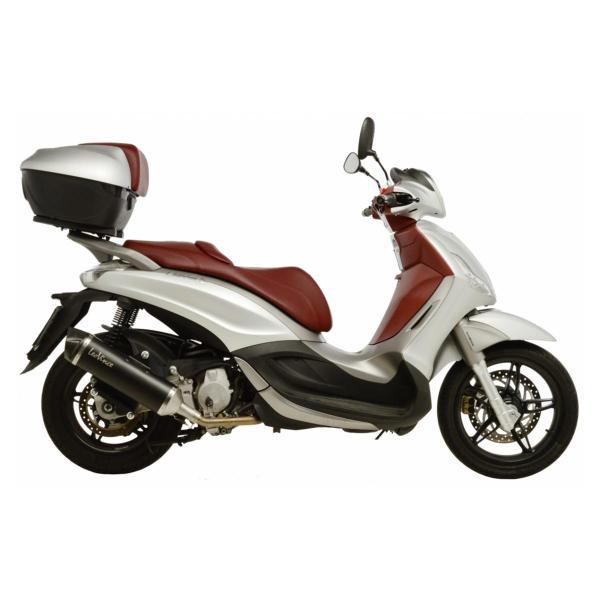The Leovince NERO Piaggio Beverly 350 Sport Touring exhaust is racing NOT approved for road use, thanks to the included fitting and the screws supplied, installation is very simple, without making any modifications to the motorbike and without remapping the control unit.