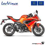 The Leovince LV ONE EVO CARBON FIBER Kawasaki Ninja 650 exhaust It is approved with catalytic converter included, thanks to the included fitting and the screws supplied, installation is very simple, without making any modifications to the motorbike and without remapping the control unit.