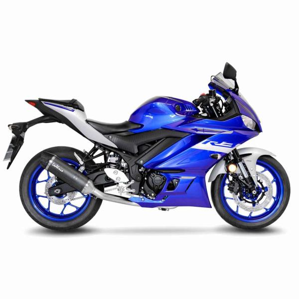 The Leovince 14123E exhaust for Yamaha YZF-R3 2019-2020 LV ONE EVO CARBON FIBER model is a complete system perfect for increasing the performance of your motorbike. The silencer is made of Carbon fiber with steel headers, offering not only a notable increase in power, but also a significant weight reduction, an increase in torque and an engaging sound that enhances the driving experience.