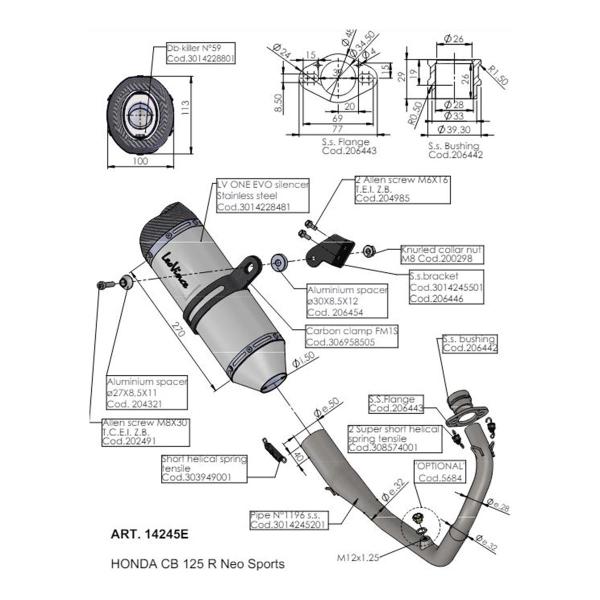 The Leovince LV ONE EVO Honda CB125R Neo Sports Cafe exhaust It is approved with catalytic converter included, thanks to the included fitting and the screws supplied, installation is very simple, without making any modifications to the motorbike and without remapping the control unit.