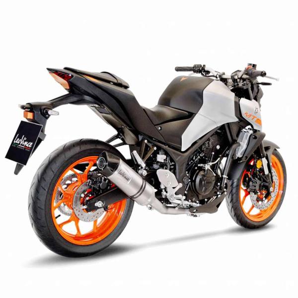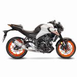 The Leovince 14122EU exhaust for Yamaha MT-03 2020 LV ONE EVO model is a complete system perfect for increasing the performance of your motorbike. The silencer is made of Stainless steel with steel headers, offering not only a notable increase in power, but also a significant weight reduction, an increase in torque and an engaging sound that enhances the driving experience.