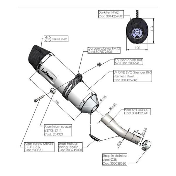 The Leovince LV ONE EVO Kawasaki Ninja 125 exhaust is approved, thanks to the included fitting and the screws supplied, installation is very simple, without making any modifications to the motorbike and without remapping the control unit.