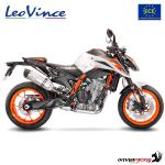 The Leovince LV ONE EVO KTM 890 Duke/L A2/R exhaust is approved, thanks to the included fitting and the screws supplied, installation is very simple, without making any modifications to the motorbike and without remapping the control unit.
