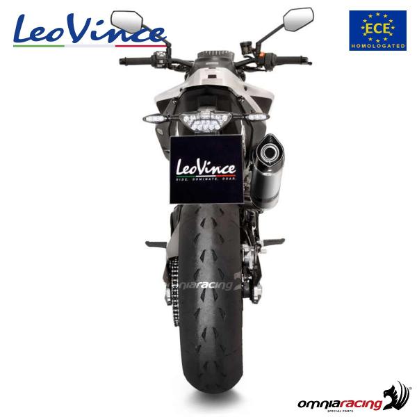 The Leovince 14253E exhaust for KTM 890 Duke/L A2/R 2020-2024 LV ONE EVO model is the perfect muffler to increase the performance of your motorbike. The silencer is made in Stainless steel, offering not only a notable increase in power, but also a significant weight reduction, an increase in torque and an engaging sound that enhances the driving experience.